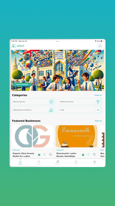 uSort ialah platform dwibahasa (Arab & Inggeris), dikuasakan komuniti yang dibuat di Kuwait untuk membantu orang ramai menemui, menyemak dan menyokong perniagaan tempatan, sambil memberi pemilik perniagaan peluang yang saksama untuk dilihat.