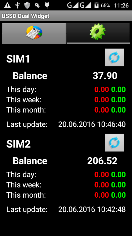 Bagi setiap kad sim adalah perlu untuk melantik kod permintaan USSD, untuk menentukan bilangan kumpulan berangka untuk memproses jawapan. (Katakan jawapan kepada permintaan USSD seperti: "Balans: 43,88 dolar Anda melihat filem animasi: * 728 * 1 # (11,86 dolar / bulan)" Di sini 4 kumpulan berangka: 43,88; ; 1; 11,86 Kami kepentingan pertama.)