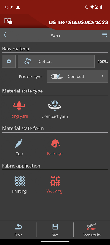 STATISTIK USTER® ialah bahasa kualiti biasa untuk industri tekstil sebagai asas untuk perdagangan benang dan asas untuk penanda aras kualiti seluruh industri. Sepanjang rantaian tekstil, daripada pengeluar benang dan pelanggan mereka kepada pengeluar mesin, serta ahli teknologi dan pelajar, tanda aras digunakan untuk memudahkan komunikasi tentang tahap kualiti. Kini, pengguna boleh mengakses semua manfaat sumber penting ini, hanya dengan memasang apl USTER® STATISTICS.