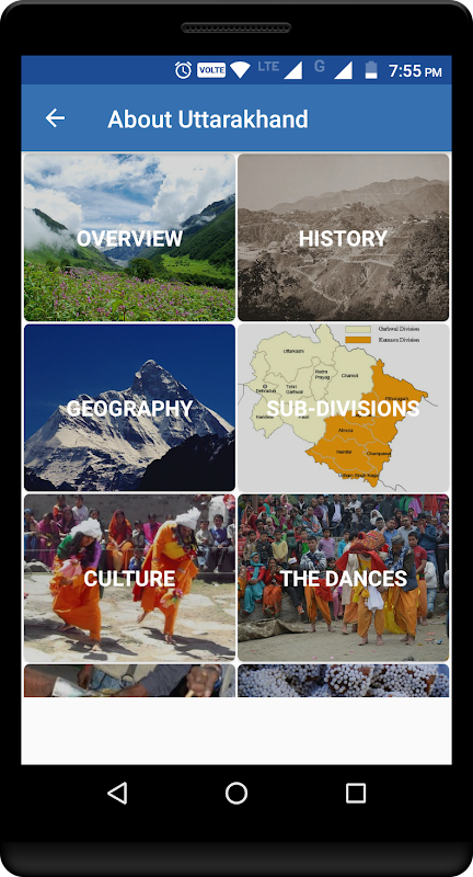 Uttarakhand Tourism App is travel guide for visitors from across the world. Here we have made our efforts to provide information, culture, food, hill stations about Uttarakhand so that visitor may know the Uttarakhand well, and does not miss any point of attraction in Uttarakhand. This app allows to guide the people through culture, hill stations, Pilgrimage, Wildlife, Trekking and many more. People can view category wise places, can view image gallery, map of that location. People can find direction from his current location to any place listed in the app.