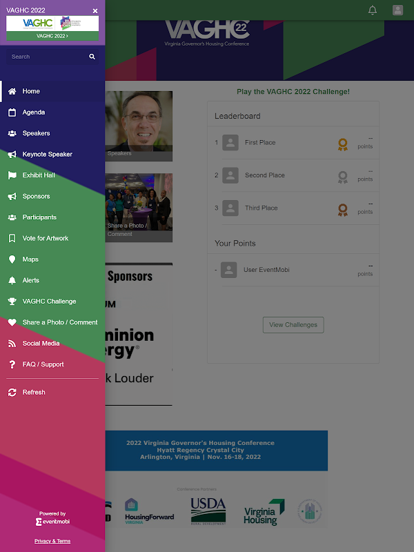 Persidangan Perumahan Gabenor Virginia 2022 Hyatt Regency Crystal City Arlington, Virginia | 16-18 Nov. 2022 Persidangan Perumahan Gabenor Virginia mempunyai pelbagai hadirin daripada banyak sektor profesional termasuk organisasi bukan untung, yayasan dan penderma dermawan lain, pemaju rumah mampu milik, pemaju ekonomi, pegawai yang dilantik kerajaan tempatan, profesional reka bentuk, institusi kewangan, agensi kerajaan, pemaju swasta, profesional hartanah, institusi pendidikan, organisasi perdagangan, organisasi berasaskan komuniti dan kepercayaan, dan penyedia perumahan awam.
