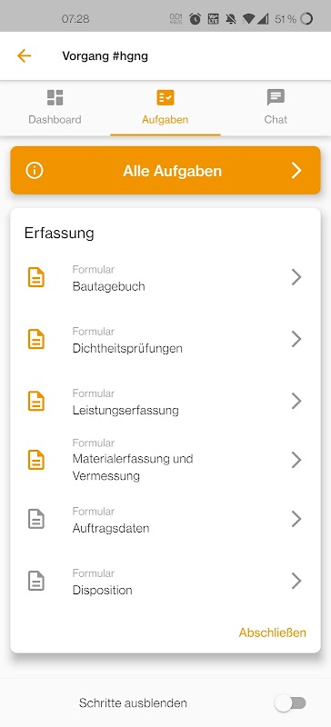 • Hasil hanya dalam beberapa klik – pesanan, kemajuan dan dokumentasi terus pada telefon pintar anda