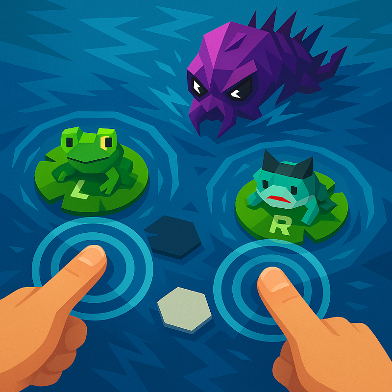 Kawal dua katak serentak - lompat, bawa, teleport, dan larikan raksasa itu