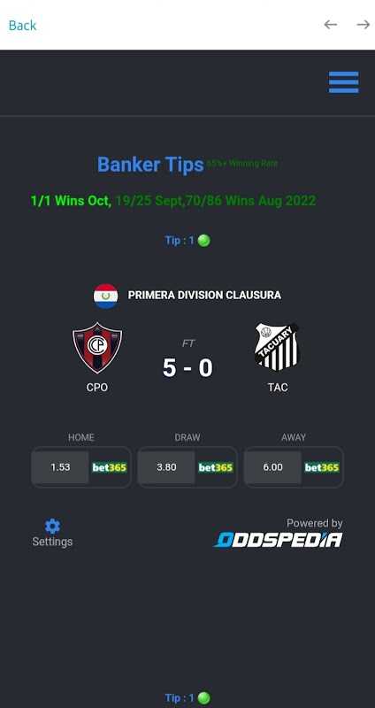 Dapatkan petua perlawanan bola sepak setiap hari. Cuba aplikasi ini untuk memaksimumkan keuntungan anda pada pertaruhan.