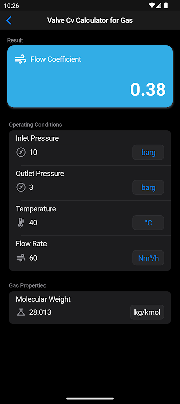 Perkemas pengiraan kejuruteraan anda dengan apl Valve Cv Calculator, alat berkuasa yang direka untuk profesional dalam mekanik bendalir, kejuruteraan proses dan instrumentasi.