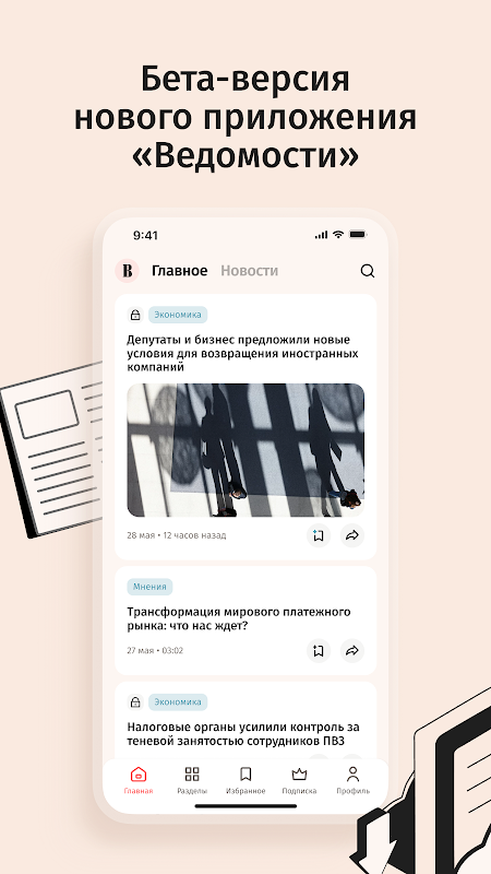 • Akses tanpa had kepada semua bahan dalam aplikasi dan di laman web vedomosti.ru;