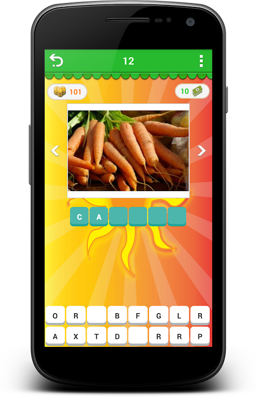 • Vegetables Quiz game is an amusing picture puzzle game for kids to learn vegetables with fun.