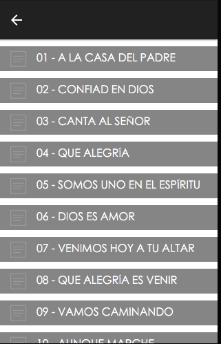 Compendio de cantos básico para utilizar en la Celebración Eucarística. Incluye el manual con el índice de los cantos propios para cada momento de la celebración, así como una serie de esquemas preestablecidos para distintas celebraciones (Ordinario, XV años, Bodas, Primeras Comuniones y Confirmaciones).