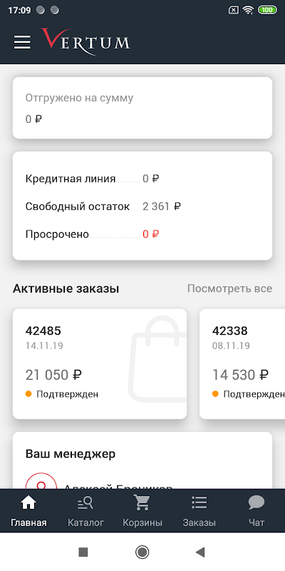 В рамках развития личного кабинета оптовой онлайн торговли компании «Вертум» наша компания разработала мобильное приложение для платформы Android. Вертум — это дистрибьютор материалов для строительства и кровли. В приложении предусмотрено несколько ролей пользователей: клиент, менеджер и водитель.