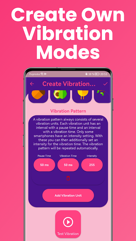 Gunakan 12 mod penggetar yang berbeza. Setiap mod penggetar adalah unik dan percuma untuk digunakan.