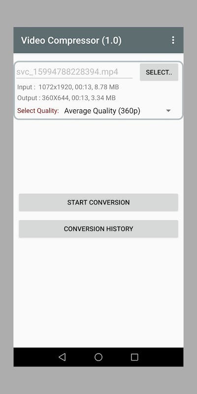 Video Compressor adalah alat bantu anda untuk mengubah resolusi video. Anda boleh mengubah kualiti video video anda, juga akan memampatkan video anda.