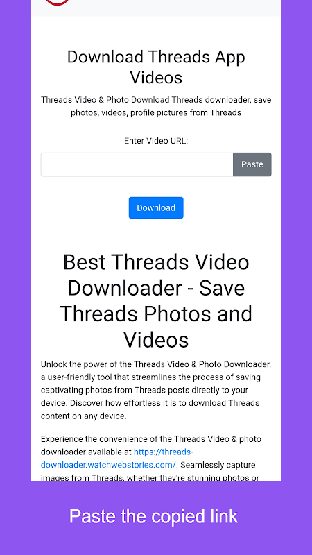 4. Go to the Threads Media Saver app, paste the link and tap on Download.