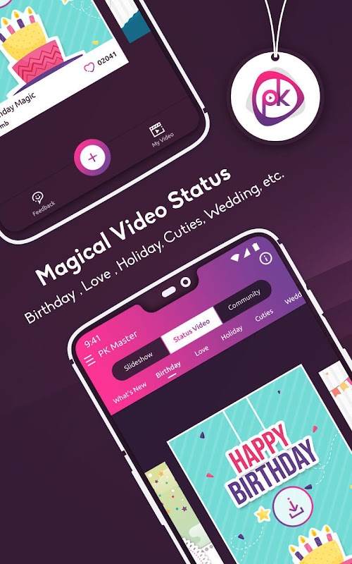 PK Master ialah apl Photo to Video Maker yang mencipta video yang menakjubkan daripada foto anda dalam beberapa saat. Anda boleh mencipta Status Video Hari Lahir, Status Video Ulang Tahun, Status Video Cinta, Status Video Percutian, Status Video Bayi, Status Video Perkahwinan, Status Video Festival, Tayangan Slaid dengan Muzik, Status Video Lirik, Status Video Muzik dan banyak lagi dalam beberapa sahaja. langkah dengan bantuan apl pembuat Video ini.