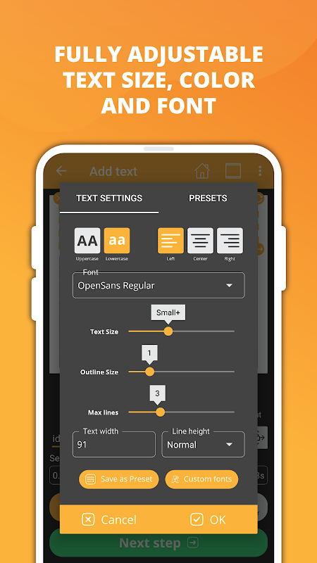 ✏️ Tweak Teks: Sesuaikan sepenuhnya teks dengan parameter boleh laras seperti saiz, warna, fon dan penjajaran.