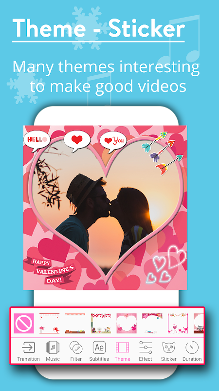 Mahu membuat video cinta, anda mahu membuat video untuk menyatakan kasih sayang, atau untuk orang yang anda sukai ... Mudah dengan aplikasi itu, dengan hanya beberapa pilih, mengedit, memilih muzik, bingkai foto yang cantik ... Anda telah mampu membuat video dengan foto dan muzik yang hebat. Bukan itu sahaja, ia juga menyatakan kreativiti dan kelas anda.