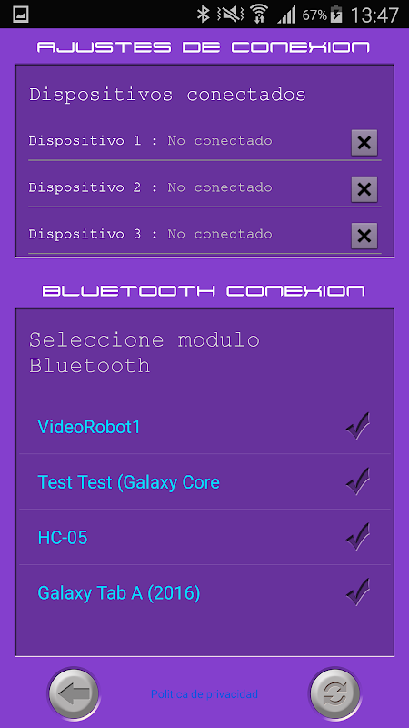 This app is controller of rc spy car, for control this app you will need instal in the other smartphone or tablet app "VideoControl" this two apps help you to build Rc Spy Car.Please see the video tutorial.