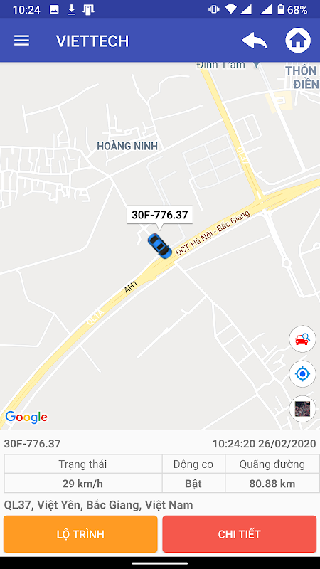 Ứng dụng giám sát hành trình xe Viettechgps