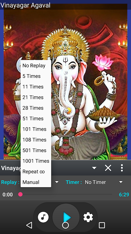 ⇒ We can set the play count for the songs which will run the song/mantra in replay mode.