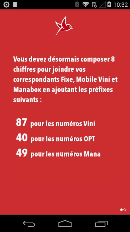 - Attribution automatique du Préfixe en fonction du numéro (fixe OPT / Mobile Vini / ManaBOX)