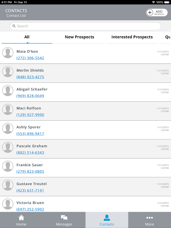 • Send pre-built messages, landing pages and media to prospects via text or email