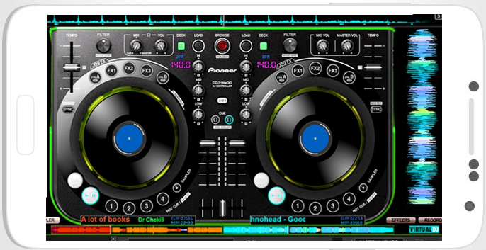aplicaciones de DJ virtuales son compatibles con los nuevos efectos de sonido, platos virtuales y sin parar la música.