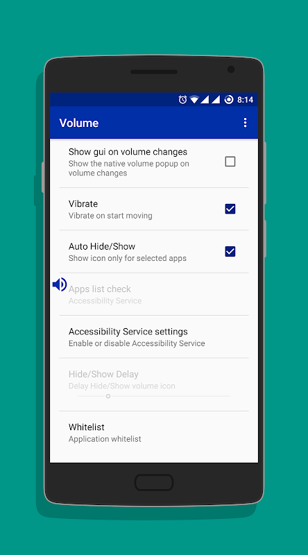 Aplikasi ini menambah butang kelantangan terapung di skrin. Gunakannya untuk mengubah suai kelantangan.