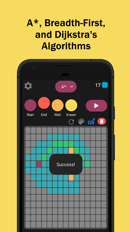 Visualize is a shortest-path search algorithm visualizer. Visualize allows you to create search scenarios and watch them execute in real-time, step-by-step. It's as simple as placing a start node, an end node, and pressing play. With grid sizes up to 25x25 (40x40 in Maniac Mode), the ability to draw walls anywhere on the grid, and 3 different search algorithms, there are millions of different search scenarios to be made! Currently supported features include: