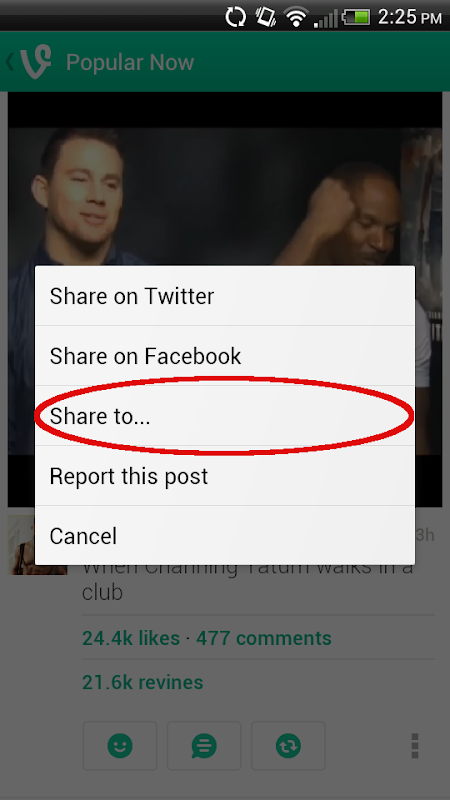 3. Jika tidak, pergi ke "Kongsi ke ..." dalam aplikasi Vine rasmi