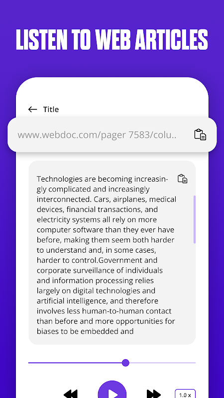 🎧 Tukar PDF, imej dan artikel web kepada audio yang berbunyi semula jadi dalam beberapa saat. Tingkatkan produktiviti, berbilang tugas, dan jadikan pembacaan mudah! 🚀