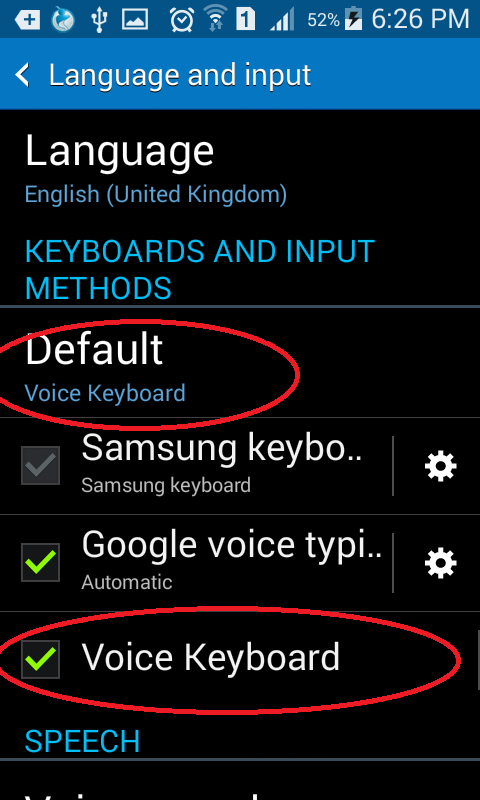 3- click on "Default" menu and select "Voice Keyboard"
