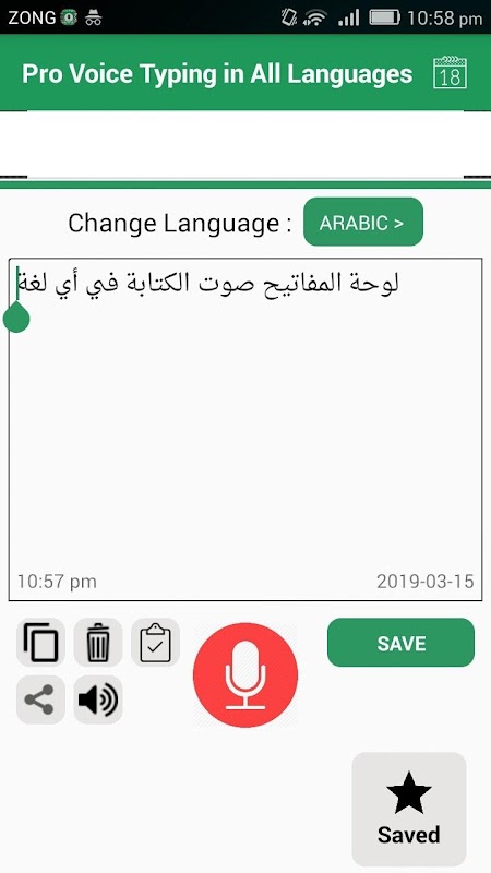 The another exciting feature of this app is Text to speech(speaking text app). It works on speak to text technology of Android phone by which app will speak text for you in any language. You can add text by typing with keyboard, voice input or copying from any other source in the app and with pressing speaker button, app will speak text for you in the original accent of selected language and text.