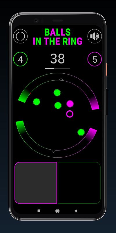 Lihat, anda mempunyai satu gelang berputar, satu bola... tidak, dua bola... sebenarnya, terdapat banyak bola tergesa-gesa dan hanya satu peraturan: bola mesti meninggalkan gelanggang melalui gol dengan warna yang sama dengan bola. Dan itu sahaja!