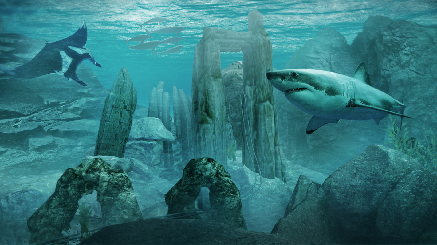 Rasa bagaimana roller coaster berjalan di trek melalui sudut kelajuan tinggi dan rendah sambil anda melihat grafik terperinci kuil tersembunyi kuno. Jalankan pepohon dan obor lampau yang anda lalui dengan laju ultra tinggi! Jadi banyak perincian untuk memerhatikan ... Adakah kuil Maya, atau mungkin ditinggalkan oleh bangsa asing? Tidak ada masa untuk berfikir kerana perjalanan terus menunggang ke dalam gua-gua yang gelap dan menakutkan dan menikmati sensasi graviti dan lengkung cepat ketika anda melewati subterrane. Akhirnya anda akan menyelam ke dalam air dan dirawat dengan pengalaman bawah air yang menakjubkan. Lihat ikan tropika dengan terperinci animasi penuh kerana mereka menjalani kehidupan bawah air mereka. Hanya apabila anda berfikir realiti maya (VR) kehidupan laut adalah semua tentang ikan karang yang indah dan berwarna-warni, anda akan melihat hiu lapar muncul di laluan coaster anda sebagai peramal berbahaya yang menjelajah laut terbuka.