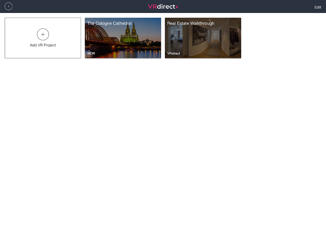 Platform VRdirect adalah cara mudah untuk membuat dan mengedarkan pengalaman VR yang menakjubkan - tiada kemahiran pengaturcaraan diperlukan! - dan aplikasi VRdirect ini adalah cara yang lancar dan mudah untuk melihat dan memainkannya di telefon, tablet atau alat dengar anda.