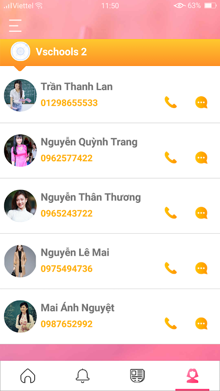 - Xem nhanh thông tin liên lạc của giáo viên, chat miễn phí và call ngay khi cần.