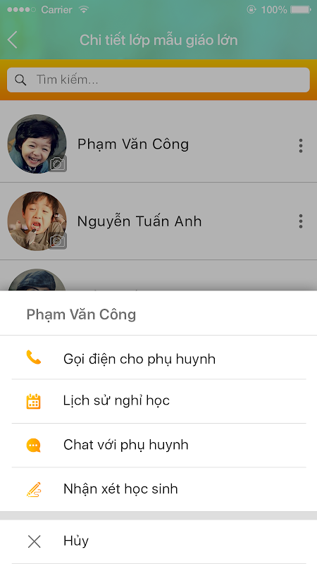 - Quản lý danh sách phụ huynh, call – chat khi cần.