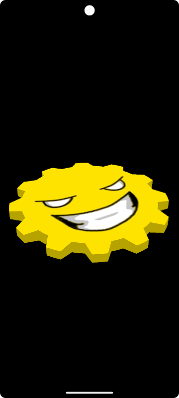 Jika semuanya berfungsi, anda sepatutnya melihat gear berputar kuning/benda seperti matahari dengan wajah tersenyum "jahat" bergaya. Ini adalah sejenis penghormatan kepada gear OpenGL asal dan aplikasi VkGears khusus Vulkan yang digunakan untuk ujian pada desktop. Apl asal dipaparkan dalam warna "rata" pepejal. Kami menambah tekstur di atas hanya untuk keseronokan.