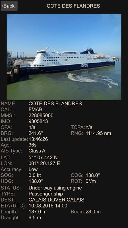 • Monitoring of navigational data: Position, Course (COG) and Speed Over Ground (SOG)