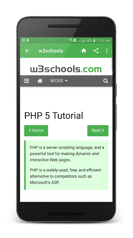 W3schools is a android app, which will help you to learn Html, Css, Php, Java Script, Jquery, Asp, Bootstrap, Sql and other web programming languages.