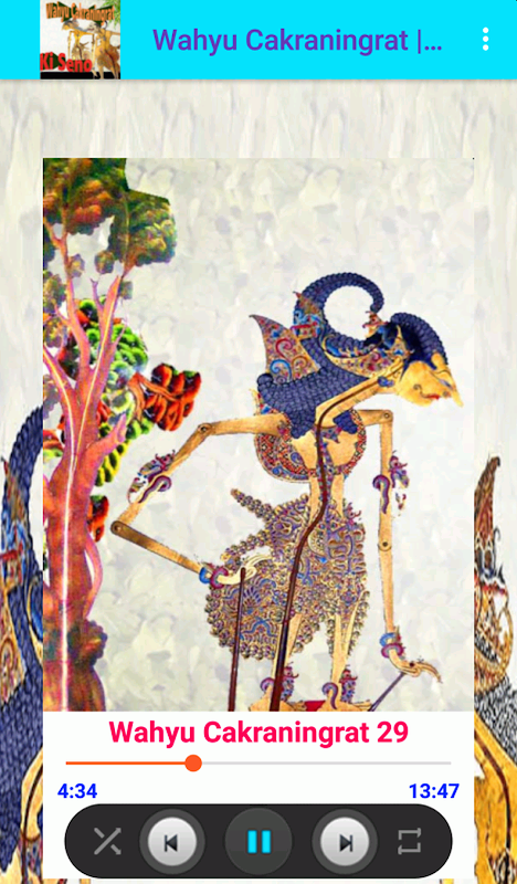 Nikmati koleksi terbaik Wayang Kulit Jawa dalam lakon berjudul Wahyu Cakraningrat yang dibawakan oleh Ki Dalang Seno Nugroho. Lakon wayang Wahyu Cakraningrat berkisah tentang upaya tiga orang satria yaitu, Raden Lesmono Mandrakumara, Raden Sombo Putro dan Raden Abimayu yang berebut untuk mendapatkan kekuasaan. Ketiganya sama-sama berambisi besar menjadi Ratu. Untuk itu, mereka harus bertarung dan mendapat gelar ”Wahyu Cakraningrat”. Siapakah yang berhasil mendapatkan Wahyu Cakraningrat? Lantas bagaimana nasib masing-masing kesatria? Silahkan di-install dan temukan jawabannya.