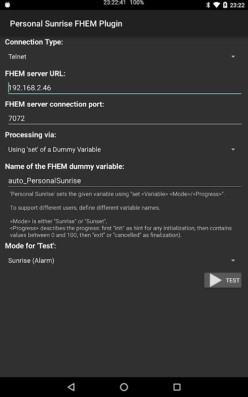The functionality is described in German at https://android.chk.digital/de/personal-sunrise/features/fhem/. If you need it in English, drop me a mail.