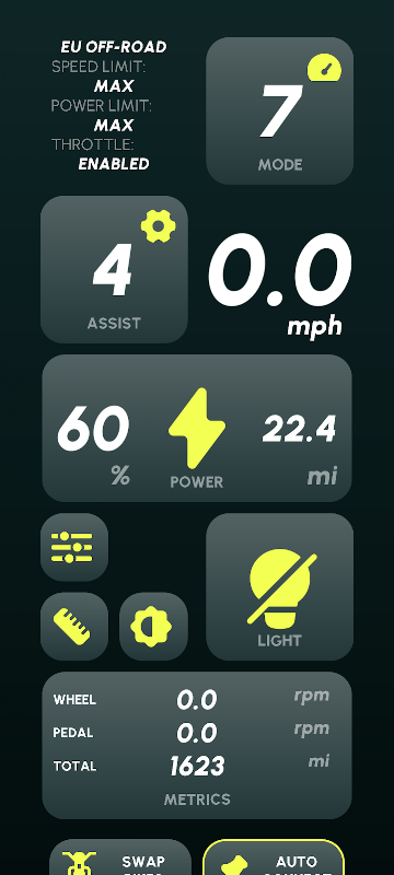 - Semua metrik! Kelajuan, RPM, Odometer, Voltan bateri, Arus...