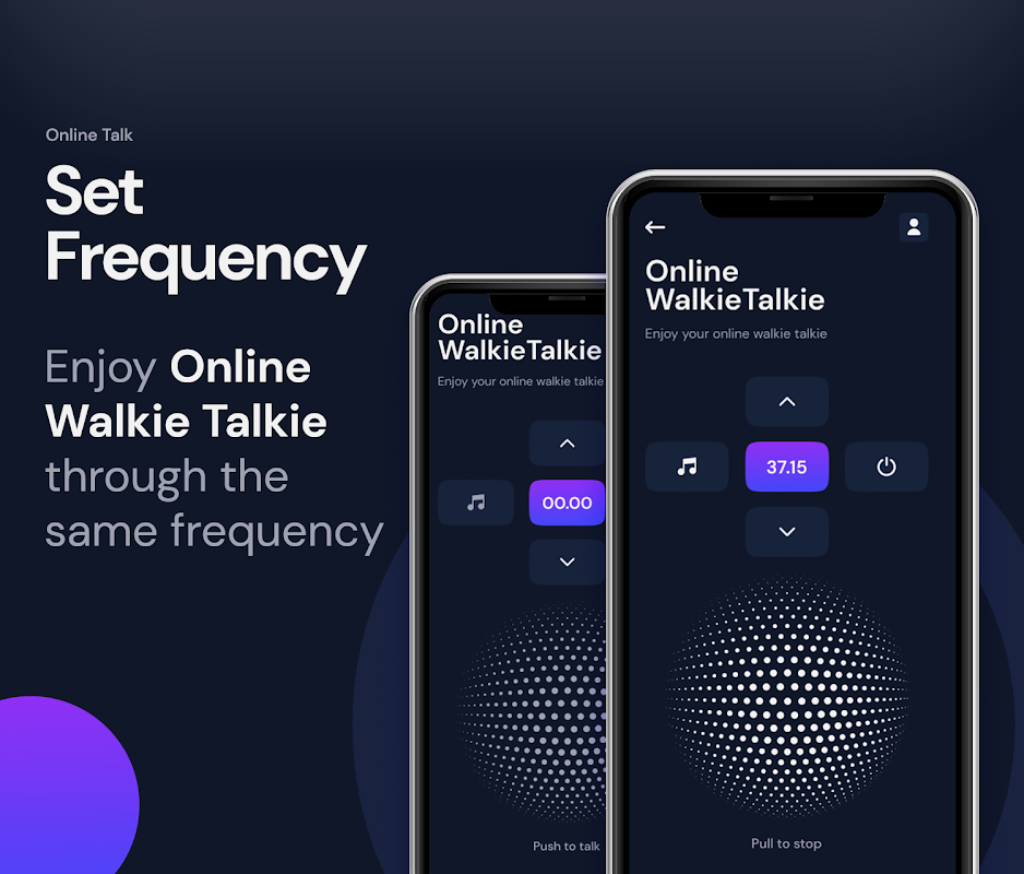 ciri push-to-talk (ptt) disediakan oleh aplikasi walkie talkie ini untuk tujuan komunikasi antara peranti yang disambungkan pada masa yang sama dan tidak memberikan sebarang kelewatan bunyi.