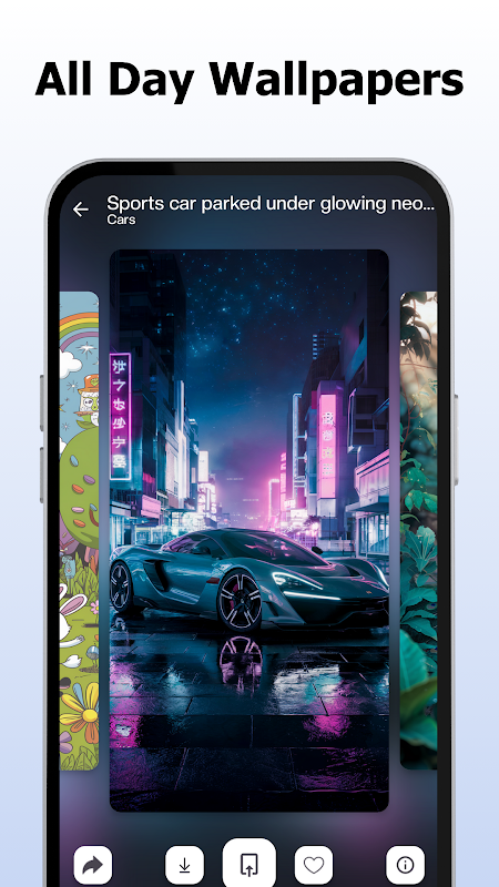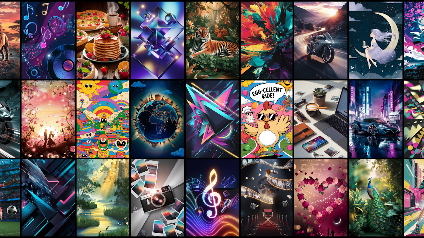 Keluarkan kreativiti anda dengan pembuat kertas dinding terbina dalam! Sesuaikan imej agar sesuai dengan gaya anda atau gabungkan elemen daripada kertas dinding yang berbeza untuk mencipta sesuatu yang benar-benar unik.