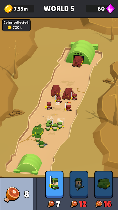 - Kumpulkan Tentera Anda: Mulakan dengan menggunakan makanan untuk merekrut pahlawan.