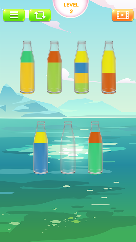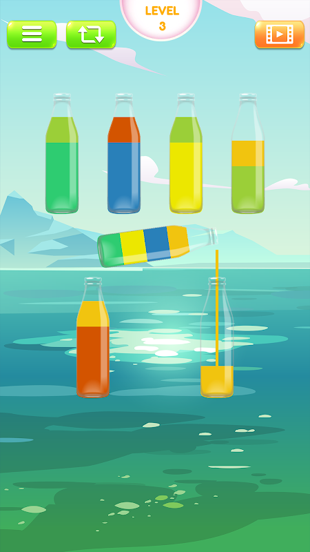Water Sort Puzzle is a fun and addictive puzzle game! Try to sort the colored water in the glasses until all colors in the same glass.