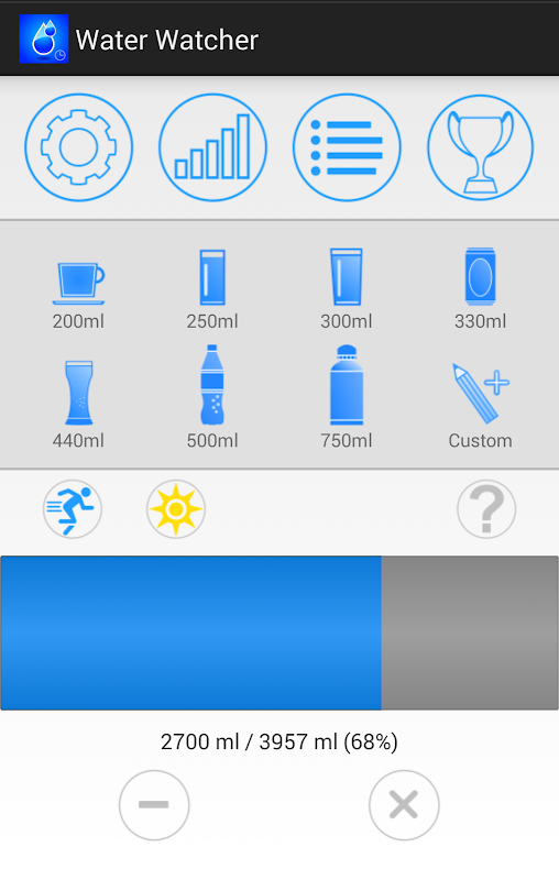 * Jejaki tabiat minum anda dengan menggunakan antara muka grafik mudah dengan pra-set jumlah saiz kaca