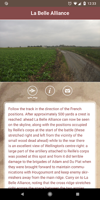 Berdasarkan kerja lapangan yang dijalankan oleh Profesor Charles J. Esdaile sempena Muzium Tentera Diraja di Brussels dan dibangunkan oleh University of Jabatan Perkhidmatan Computing Liverpool, aplikasi ini direka bentuk untuk membolehkan pengunjung (kedua-dua visual dan fizikal) untuk meneroka tapak ini pada masa lapang mereka .