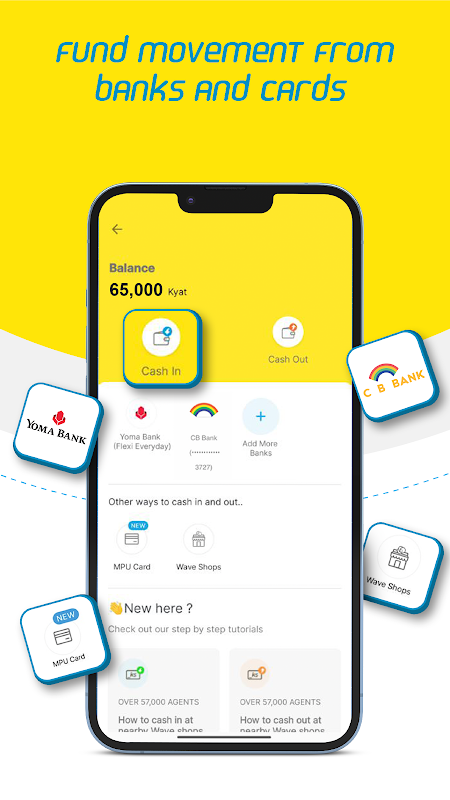 WavePay is Myanmar's leading mobile financial service application by WaveMoney, designed to promote digital payment inclusion through its extensive network of approximately 60,000 agents and over 200,000 merchants. The app offers comprehensive payment solutions including peer-to-peer money transfers, QR code payments at various establishments, mobile top-ups, and bill payments for services such as internet, solar, insurance, and MFI loans. Security is paramount with features like 'One Wallet, One Device' (1W1D), PIN authentication, and a 6-digit secret code for non-app transfers. Users can easily manage their funds through cash-in and cash-out services at Wave agent shops nationwide or by linking bank accounts and MPU cards. The platform also supports online shopping payments, food delivery, travel bookings, and various utility payments, making it a versatile digital payment solution for Myanmar's consumers.