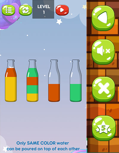 • You will win when you successfully arrange the water in each bottle with the same color.